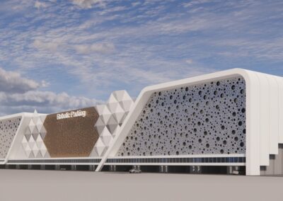 The steel or concrete supporting construction of the Robotic Parking System will accept any variety of façades. This allows planners and architects a free hand in designing the external appearance of the facility. Whether you choose a half-timbered, brick, aluminum, concrete or glass facade, the choice is yours. The garage can be designed to fit harmoniously into its environment. Entry / exit terminals can also be integrated into the façade environment, while observing both visual as well as functional criteria.